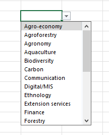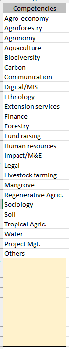 Dans notre exemple, ci-contre, la liste représente des « compétences » de sous-traitants ou fournisseurs pour un projet international, à but environnemental ou humanitaire.